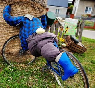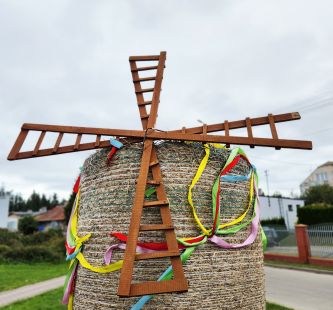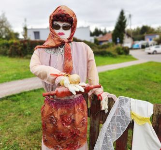 Na wjeździe do Nowej Wsi wita mieszkańców i przyjezdnych niezwykły znak gościnności – kolorowy witacz dożynkowy. To nie tylko dekoracja, ale swoista opowieść o tym, co dla większości wiejskich społeczności najważniejsze: pracy na roli, wspólnocie i radości ze zbiorów. Słomiany wiatrak, postacie w tradycyjnych ubraniach, rower, płotek z praniem i kosze pełne plonów – każdy detal mówi o codziennym życiu, o zwyczajach przekazywanych z pokolenia na pokolenie.