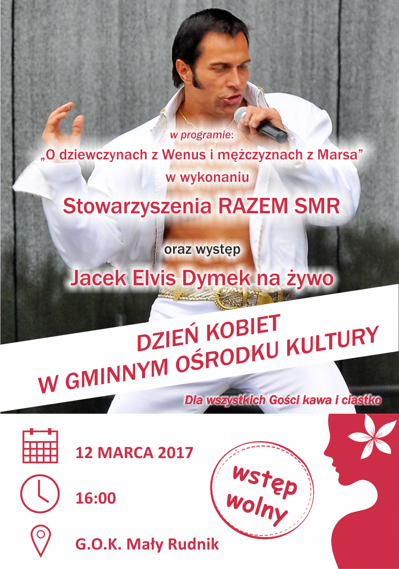 Gminny Ośrodek Kultury w Małym Rudniku oraz Stowarzyszenie RAZEM SMR zapraszają na Dzień Kobiet.